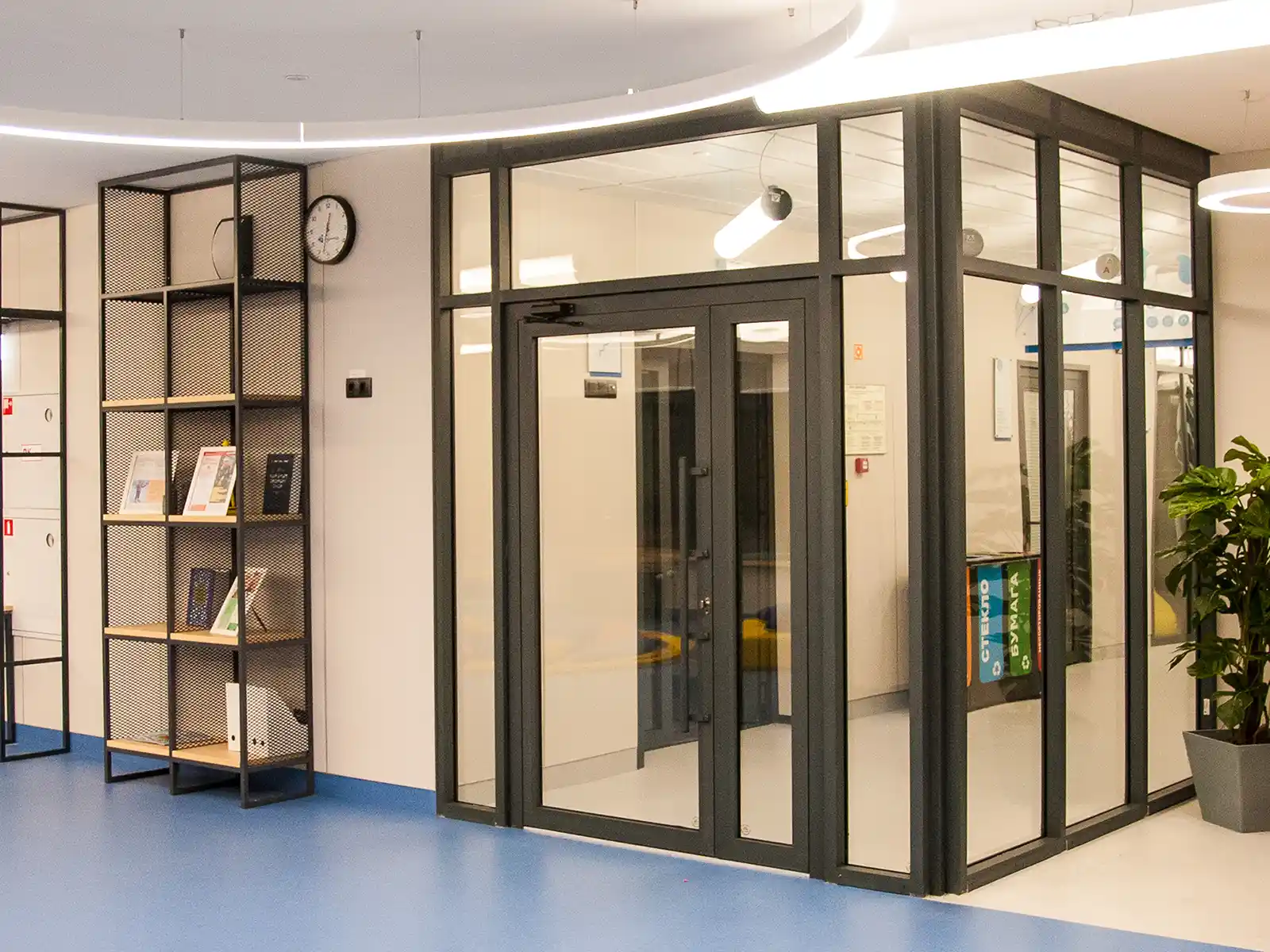 Можно подобрать противопожарные стеклянные двери, которые являются стильными и надежными светопрозрачными конструкциями. Существует несколько разновидностей: